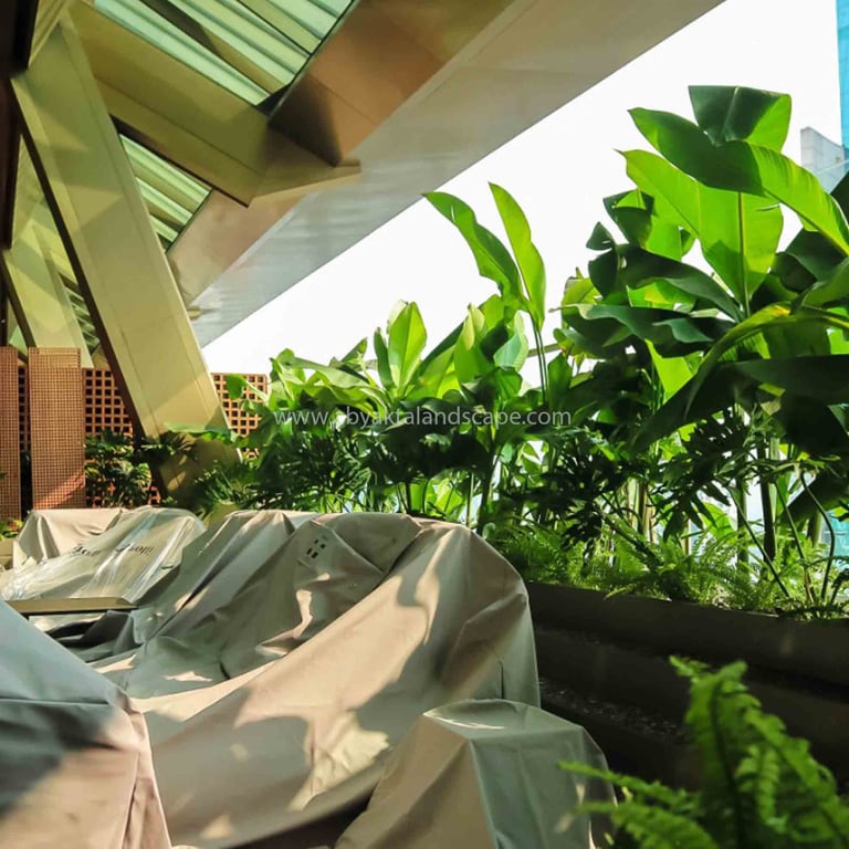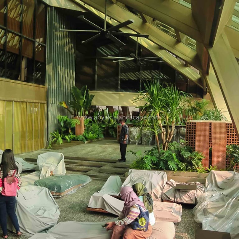 Perched atop the iconic BNI Building in the bustling heart of Sudirman, Jakarta, the roof garden stands as a serene escape from the urban chaos below. Designed with a Tropical Concept, this elevated sanctuary offers a refreshing and rejuvenating environment for the board of directors, employees, and visitors who gather here. Positioned on the 32nd floor, the garden provides an unparalleled vantage point, offering breathtaking panoramic views of Jakarta’s sprawling skyline. This unique space not only serves as a place for relaxation and contemplation but also as a testament to the harmonious integration of nature and urban architecture.